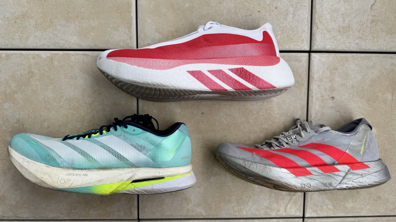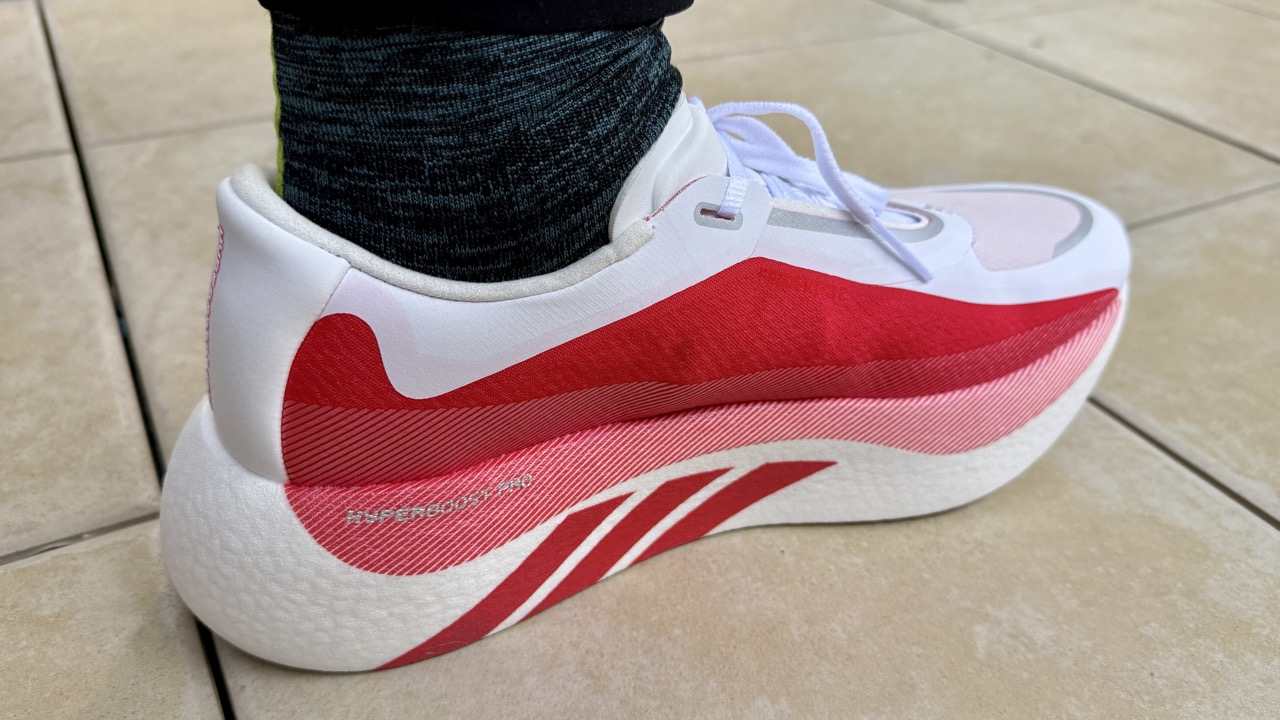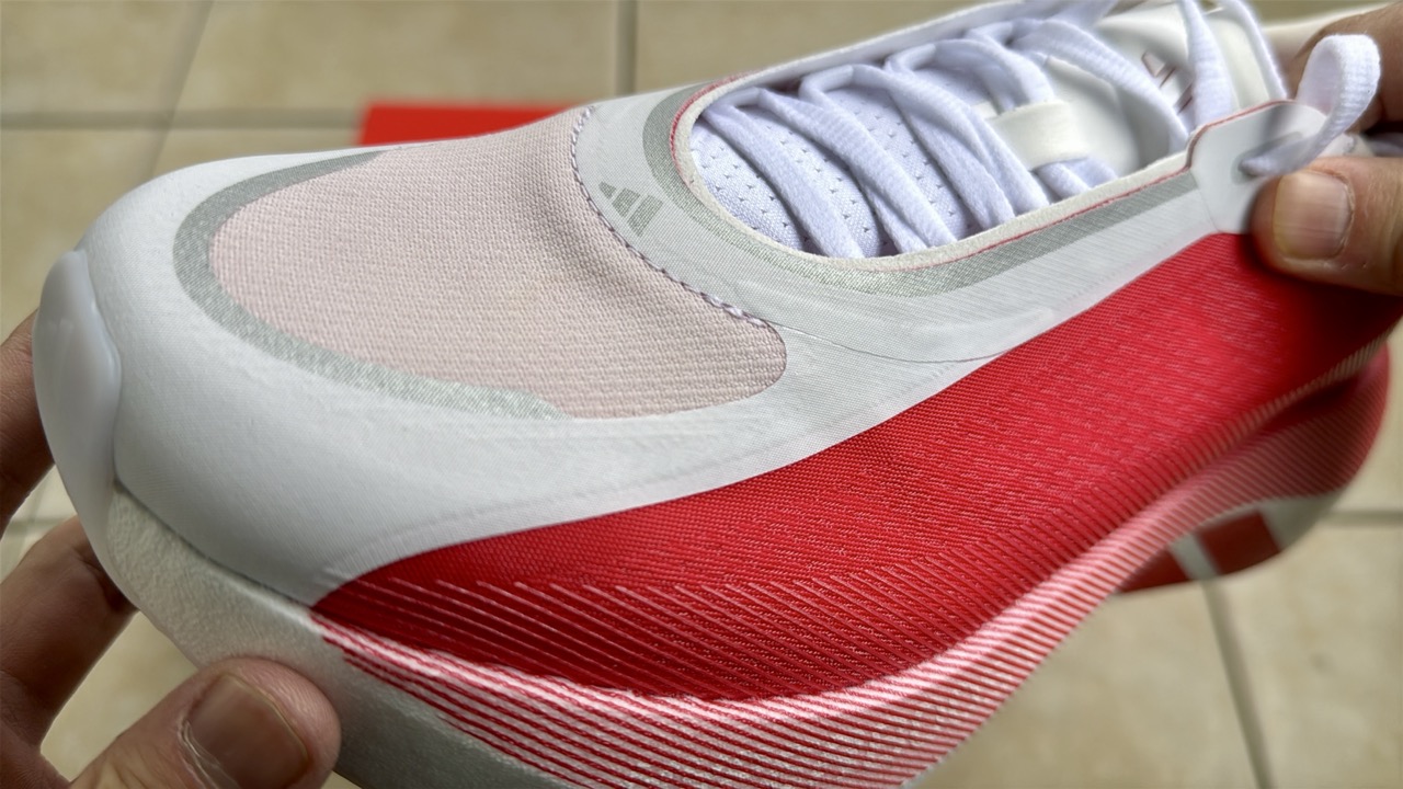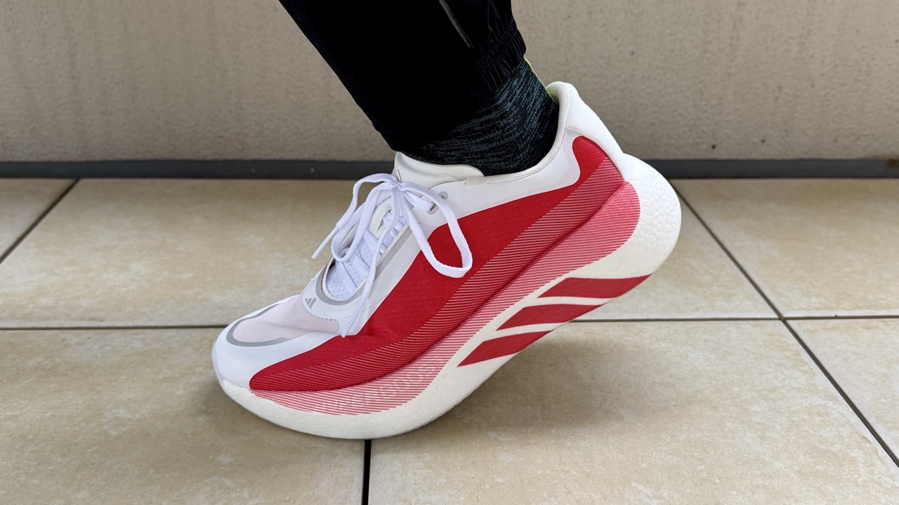 ここ数年、私は「アディゼロボストン13」や「アディゼロプロ4」などを愛用しており、Lightstrikeフォームとエナジーロッドが生み出す柔らかいクッションと力強い推進力に慣れているので、やや硬めで反発力のあるハイパーブーストエッジは新鮮味があります。