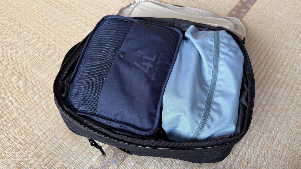 ここからは「トラベルバックパック25L+5L」の収納力を詳しく見ていきます。