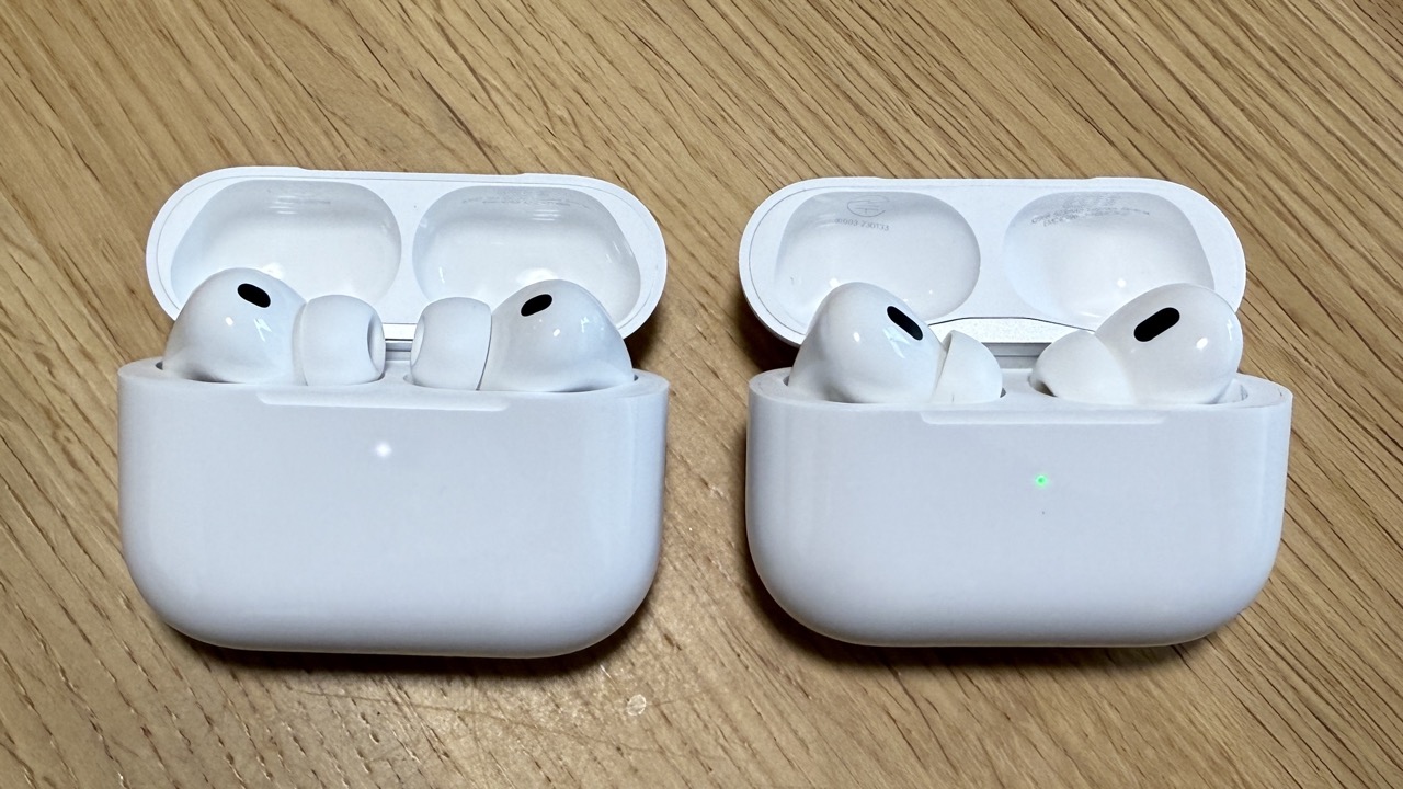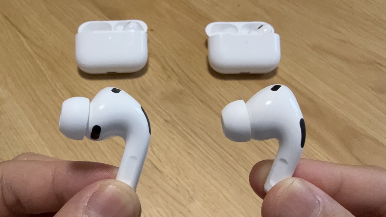 写真は左が「Pro 3」で右が「Pro 2」。ケースに格納されている状態だと、ほぼ見分けがつきません。ちなみに充電ケースに格納した状態だと「Pro 3」が55gで、「Pro 2」よりも8g軽くなりました。