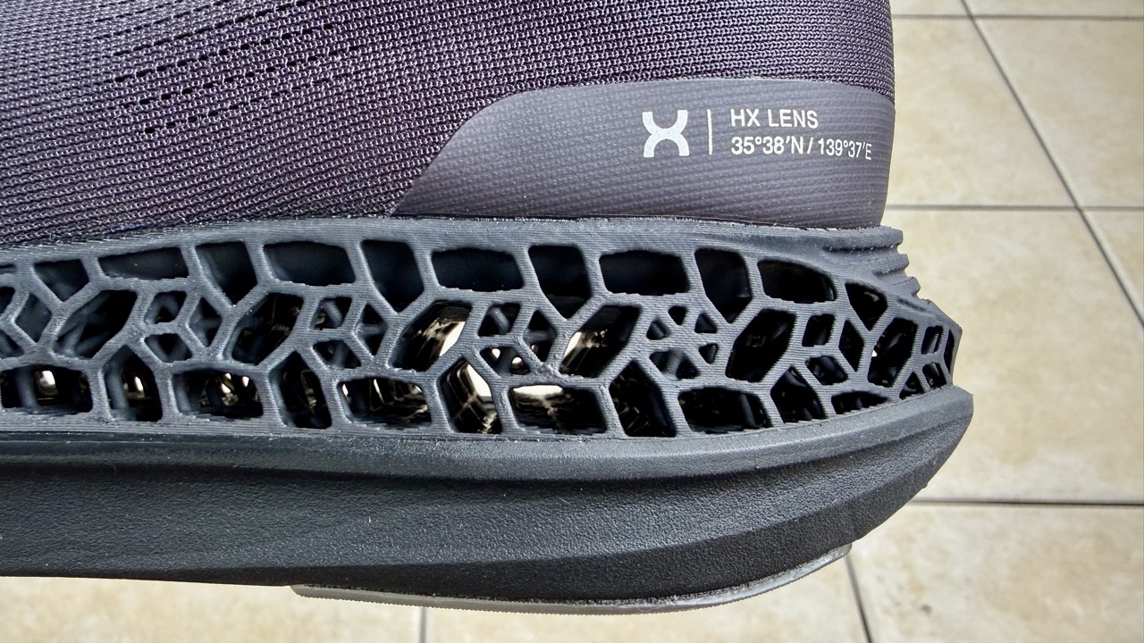 「HX LENS」は見惚れてしまうほど美しい。特にこのHeliXソール。計算されていないようで計算されているような、まるで自然界に存在するかのような独特なパターン。しかもそれがランニングシューズのソールとして機能する。「機能美」という言葉が相応しいですね。