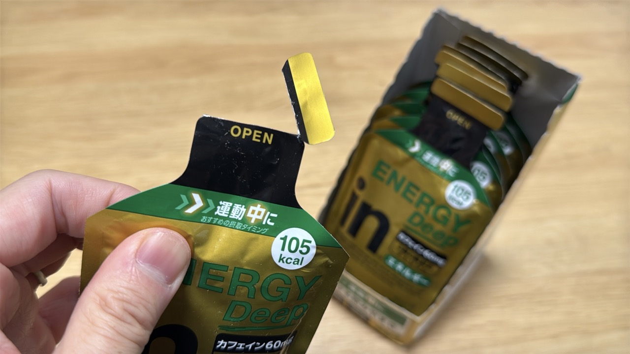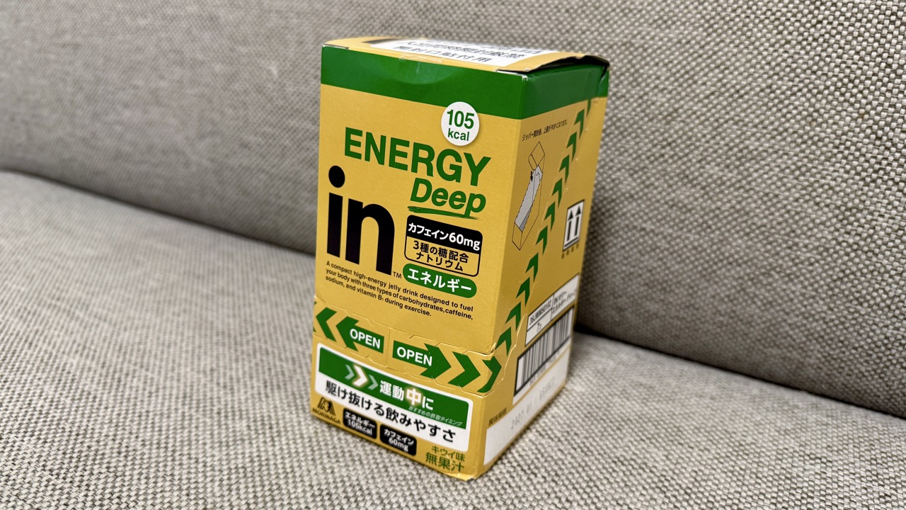 inゼリーが作ったエナジージェルってどうなの?本当にランニングで使えるの?そんな疑問に答えるため、2025年8月に発売された「inゼリー エネルギーDEEP」を詳しくレビューしたいと思います。結論、原材料に「寒天」を使っていて、半固形で飲みやすかったです。