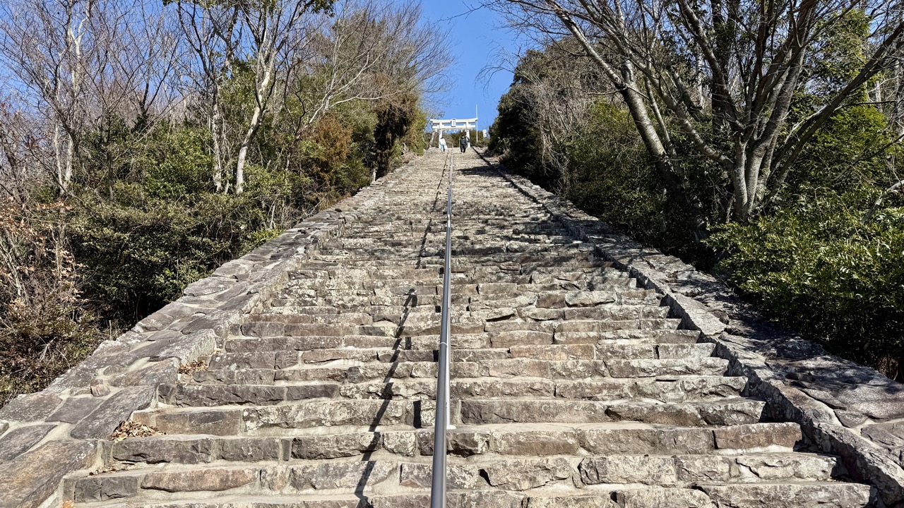 今日は香川県の観音寺から父母ヶ浜(日本のウユニ湖?)まで16km走りました。途中「天空の鳥居」で有名な高屋神社(標高400m)を参拝したため足がバキバキ…