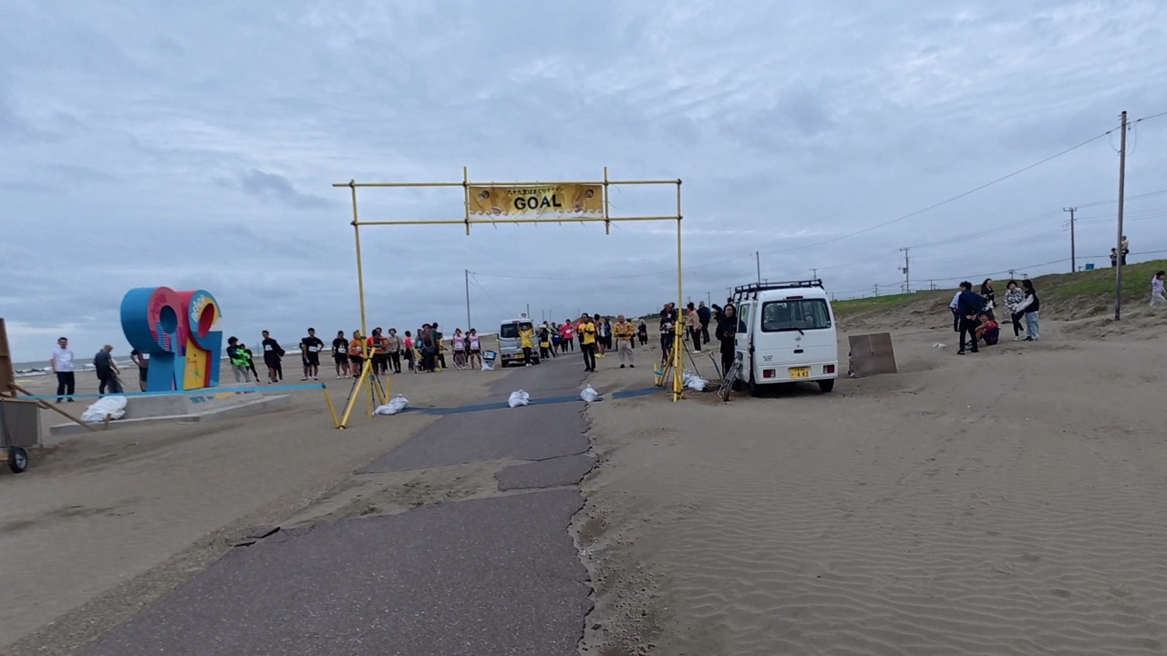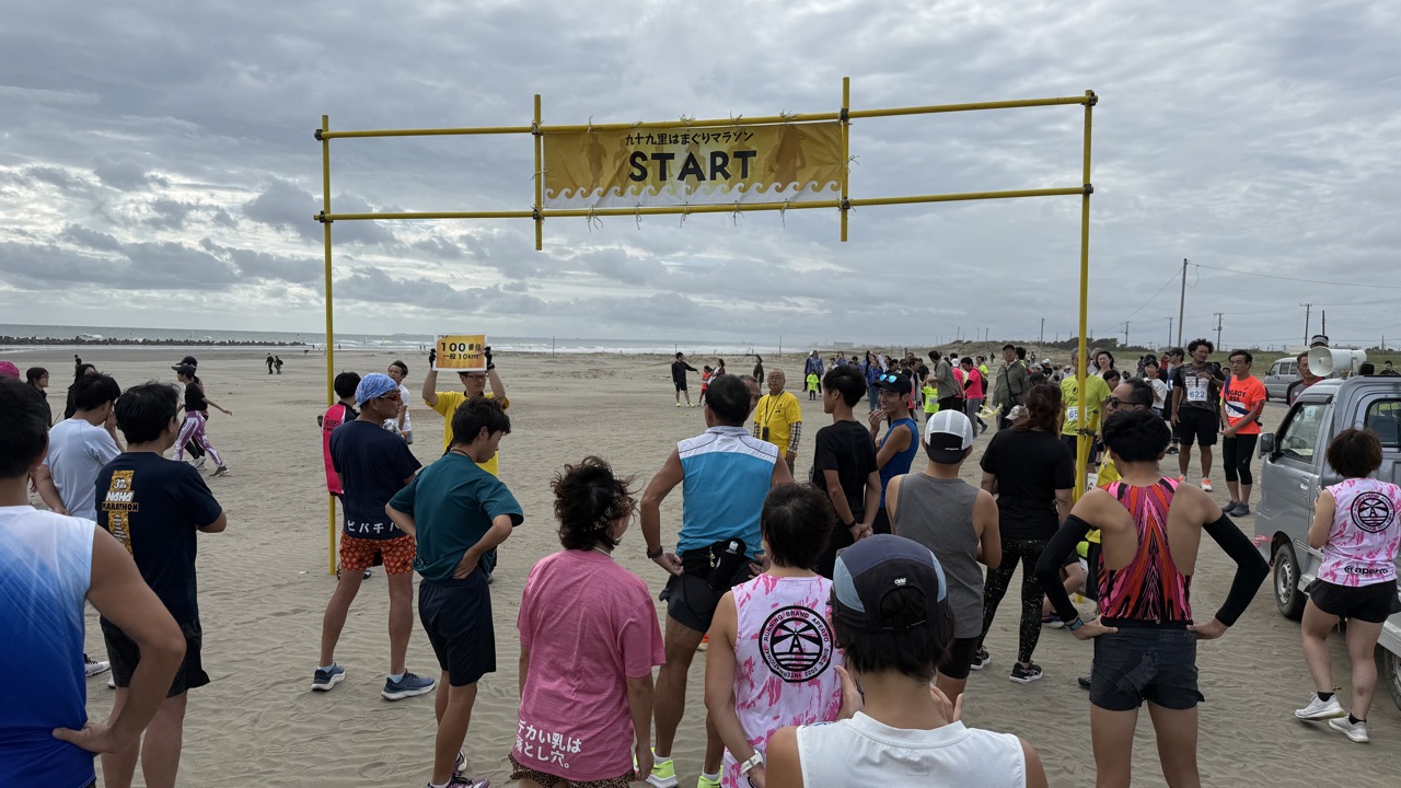 九十九里は太平洋に面する千葉県の東側に位置し、海沿いには日本最大級の砂浜の「九十九里浜」が広がります。レースでは、この九十九里浜のビーチの一角を走ります。