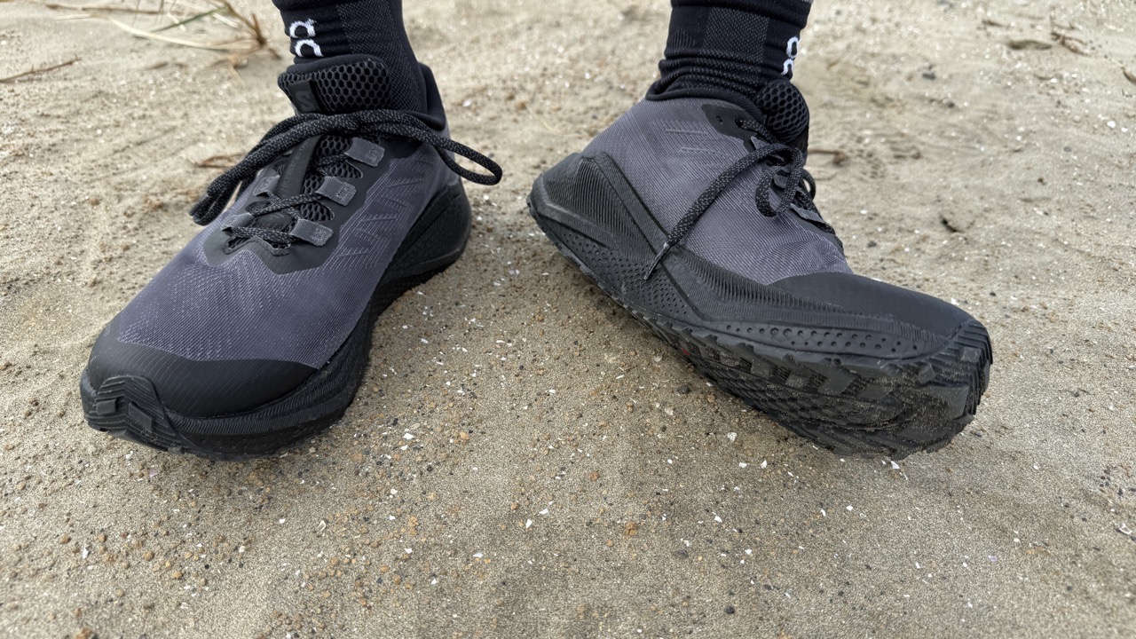 シューズは先日購入したばかりのSalomonの「エアロブレイズ3 GRVL GORE-TEX」。オフロードも走れるロードシューズなので、ビーチランはお手のもの。防水仕様なので波打ち際を走っても足をドライに保ってくれます。その他、ランニングアイテムの詳しいレビューは関連記事に載せておきます。