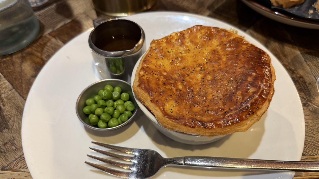 その後、タワーブリッジ近くのパブで昼食(費用に含まれる)。ツアーの参加者と交流しながらビーフパイなどをいただきました。