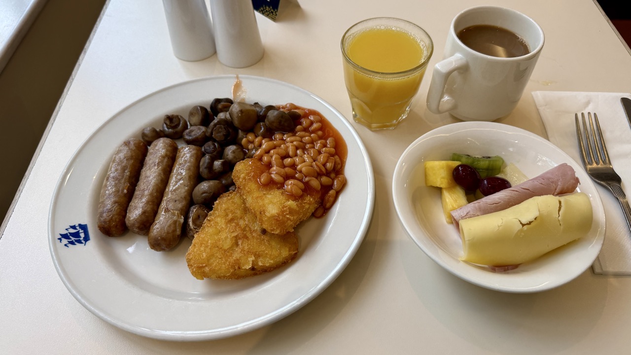 翌朝はホテルのバイキングで朝食(費用に含まれる)をいただきました。ザ・イングリッシュブレファストですね。