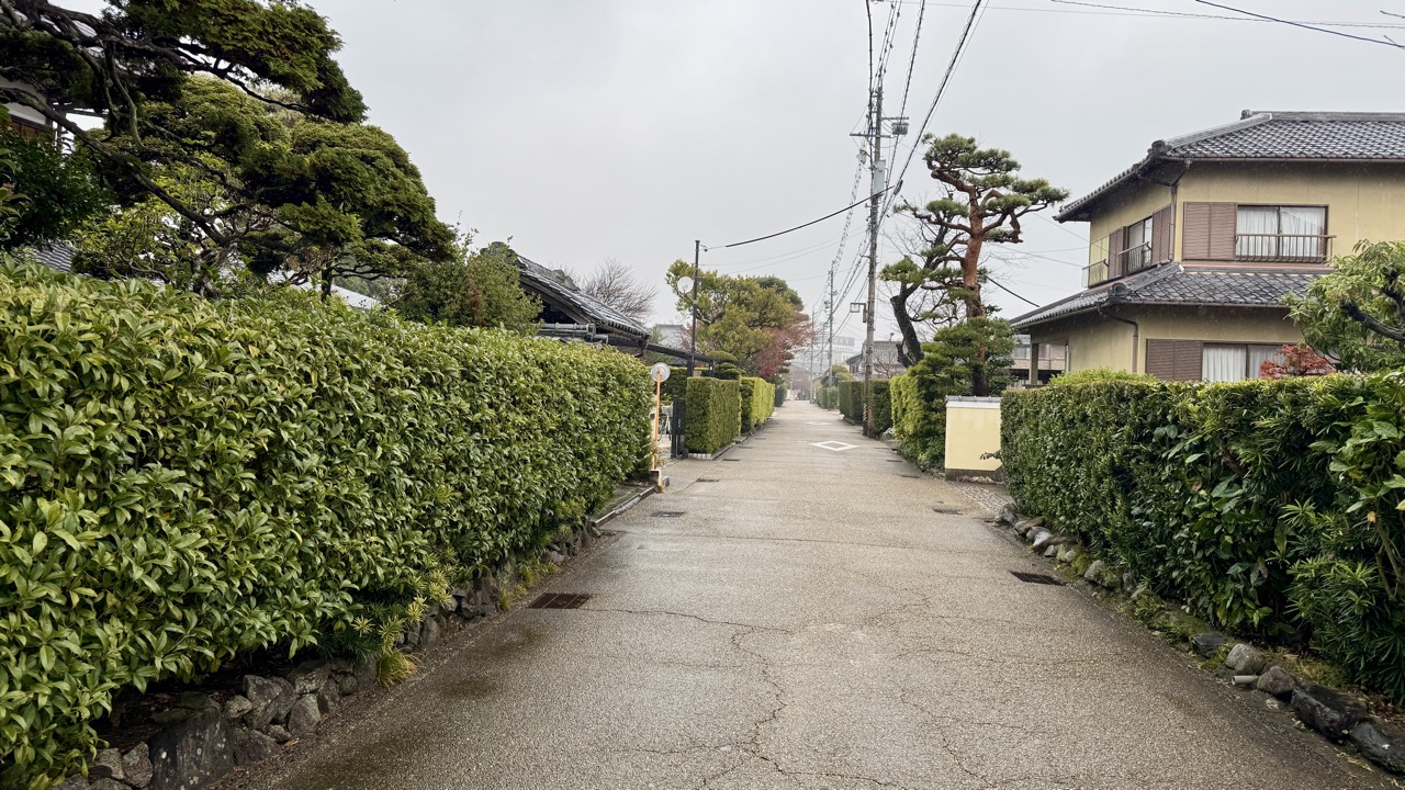 また、その近くにある江戸時代に同心(足軽階級の下級役人)が住んでいた旧同心町も走ってきました。こちらも生垣が手入れされていますが、建物が今風なので江戸時代の面影は薄いです。