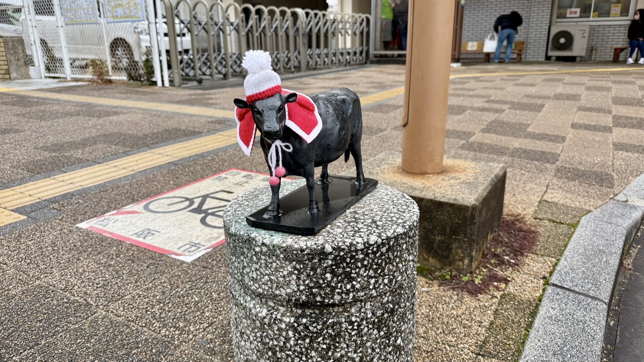 こちらは松阪駅前にある松阪牛の銅像。ロータリーの片隅にあるので普通なら見落としてしまいそうですが、サンタコスチュームで目立っていたので記念撮影しておきました。
