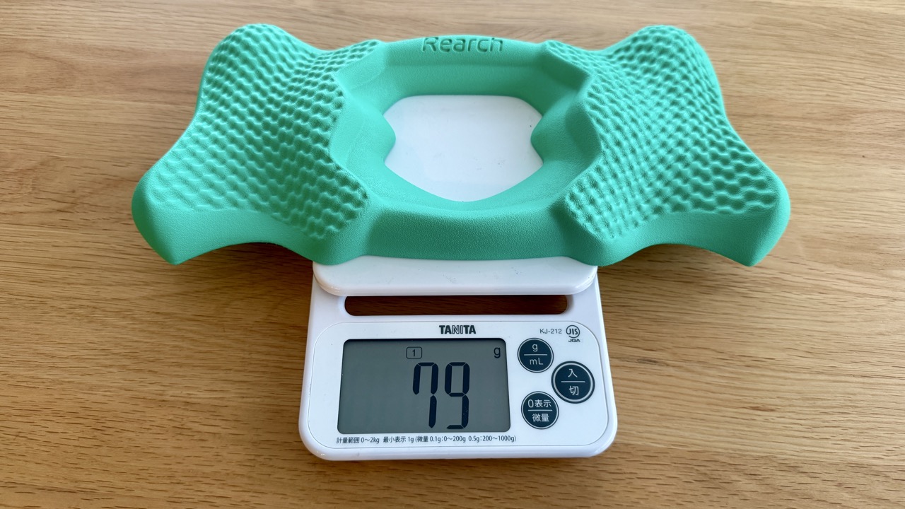 「リアーチ」はコンパクトな設計に加えて、重さがわずか80g(実測値は79g)と持ち運びにも便利です。旅行や出張、マラソン遠征など、旅先でも足裏のアーチを整えるエクササイズができます。