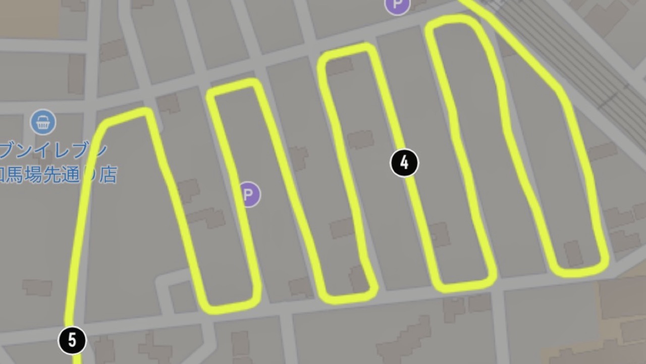 長い一直線の坂だと理想的なんですが、我が家の近所にはありません。そこで、自宅から3kmの浦和駅〜南浦和駅のエリアに狙いを定めました。この辺りは地形的に大宮台地の縁に位置するため高低差10〜20m級の谷間が多く、それを上手く利用すればエンドレスに坂道ジョグができます。しかも住宅エリアなので信号はありませんし、街灯で明るく、車通りも少ないため、日没後でも安全に走れます。