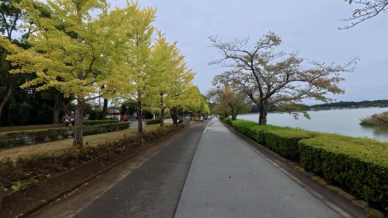 2km過ぎたあたりで左手に千波湖が姿を現しました。また後ほど33km以降でここに戻ってきます。