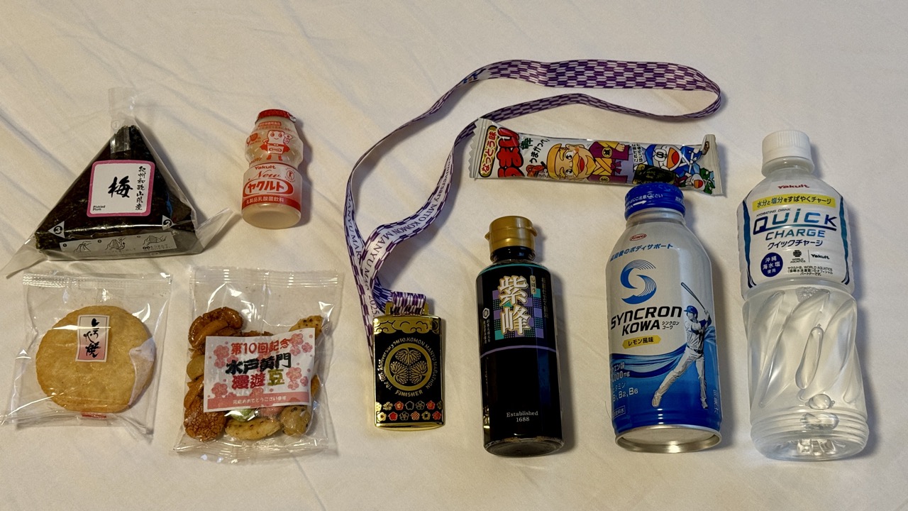 本日の戦利品はこちら。結構豪華だな、と思いました。おにぎりが「梅」なのも水戸ならではのこだわりを感じます。うまい棒は娘にプレゼントしましたが「なっとう味」にビビってしまい、まだ食べられていないそうです。