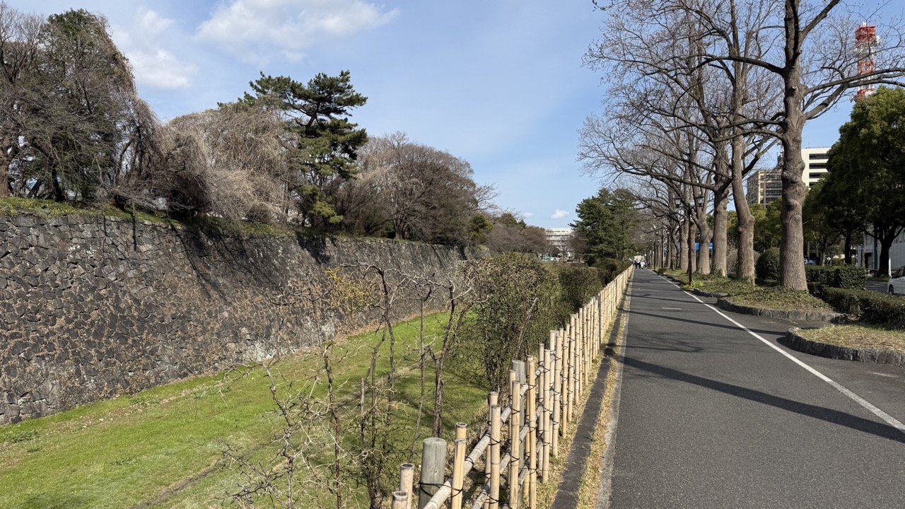 お堀の南側の様子。ここは道幅が広く、人も少なくて一番走りやすかったですね。