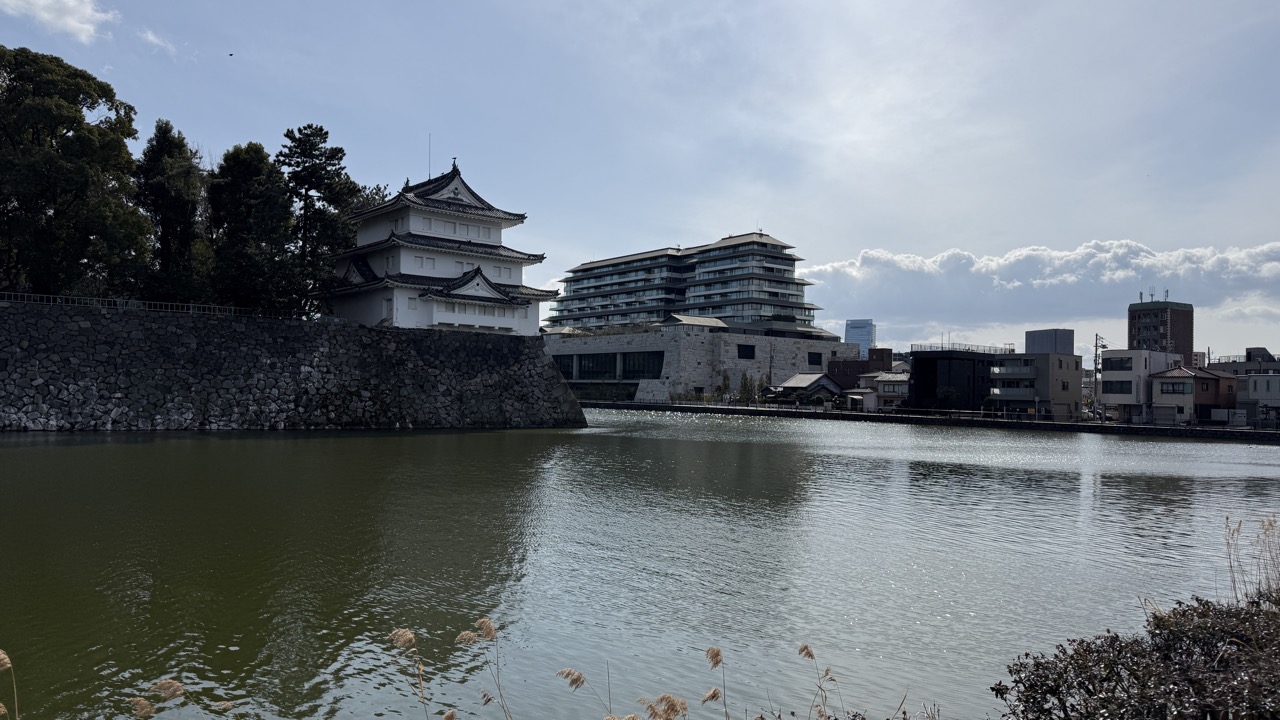 名古屋城の北東部には西北隅櫓がありますが、そこからお堀を挟んで奇妙な建物を発見。まるで現代版の名古屋城みたい。調べてみると2025年にオープンしたばかりのラグジュアリーホテル「エスパシオ ナゴヤキャッスル」でした。