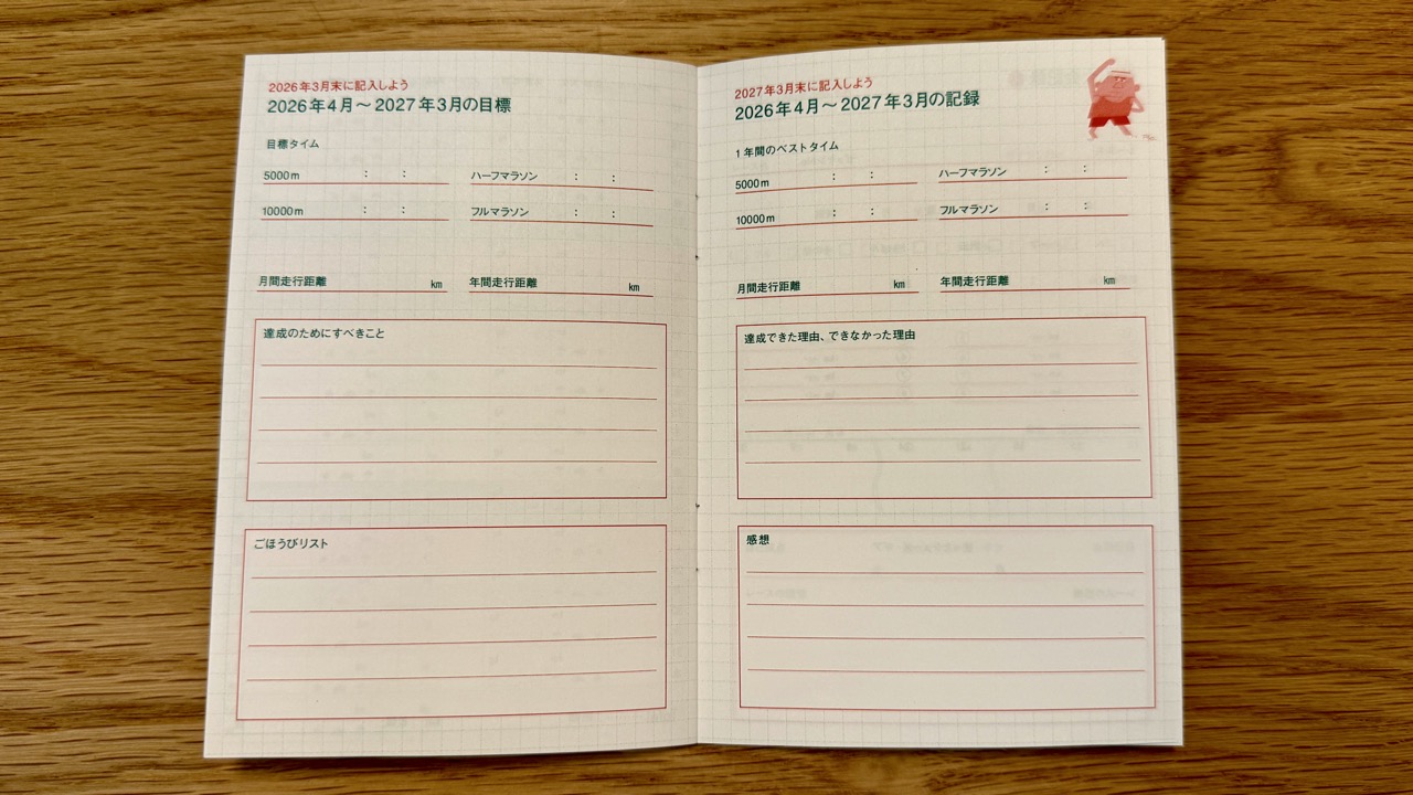 他にも、目標タイムや達成するためにすべきことを記入するページもあり、長期的視点で計画を練ったり、過去を振り返ったりすることもできます。