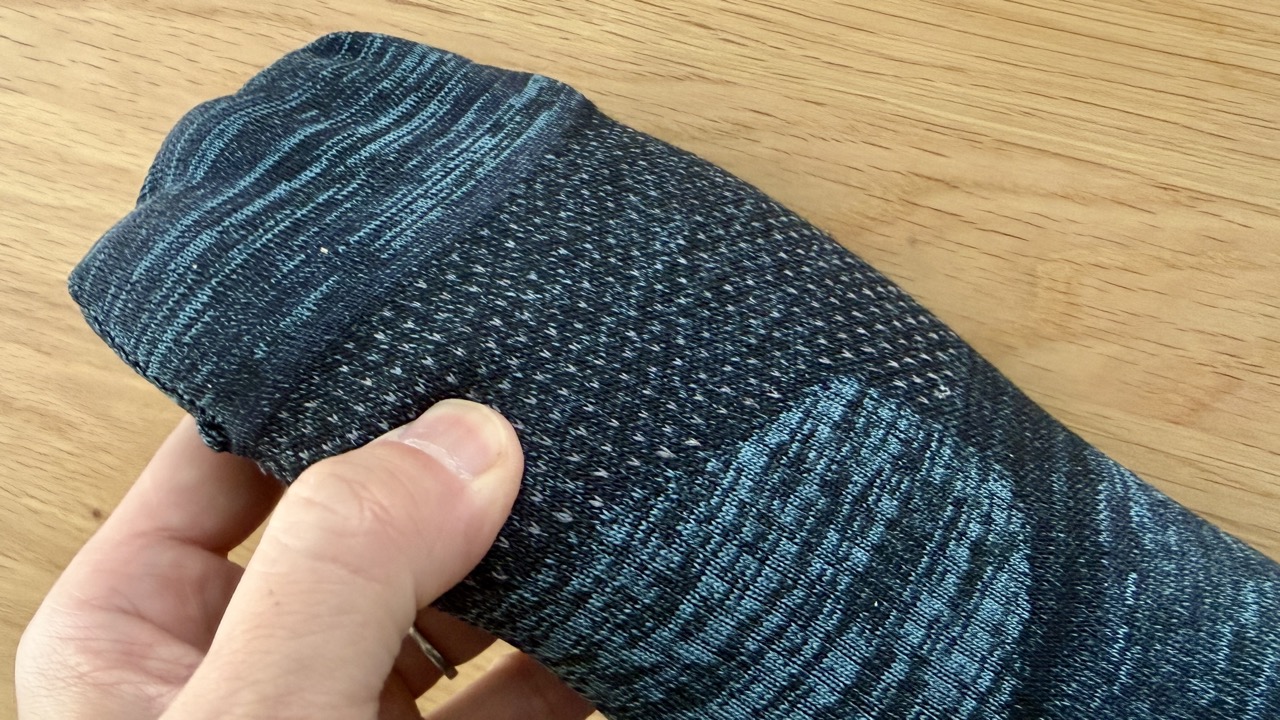 これだけ多種多様な素材を組み合わせ、複雑な構造をしているのに、まるで1枚の生地のようにシームレースに編み上げる縫製技術はさすが、としか言いようがありません。以前履いた「アルティメットASO」は私にはうまくフィットしませんでしたが、「S-70」は隙間なくフィット。着圧は低めなのにサポート力を実感する不思議な感覚。