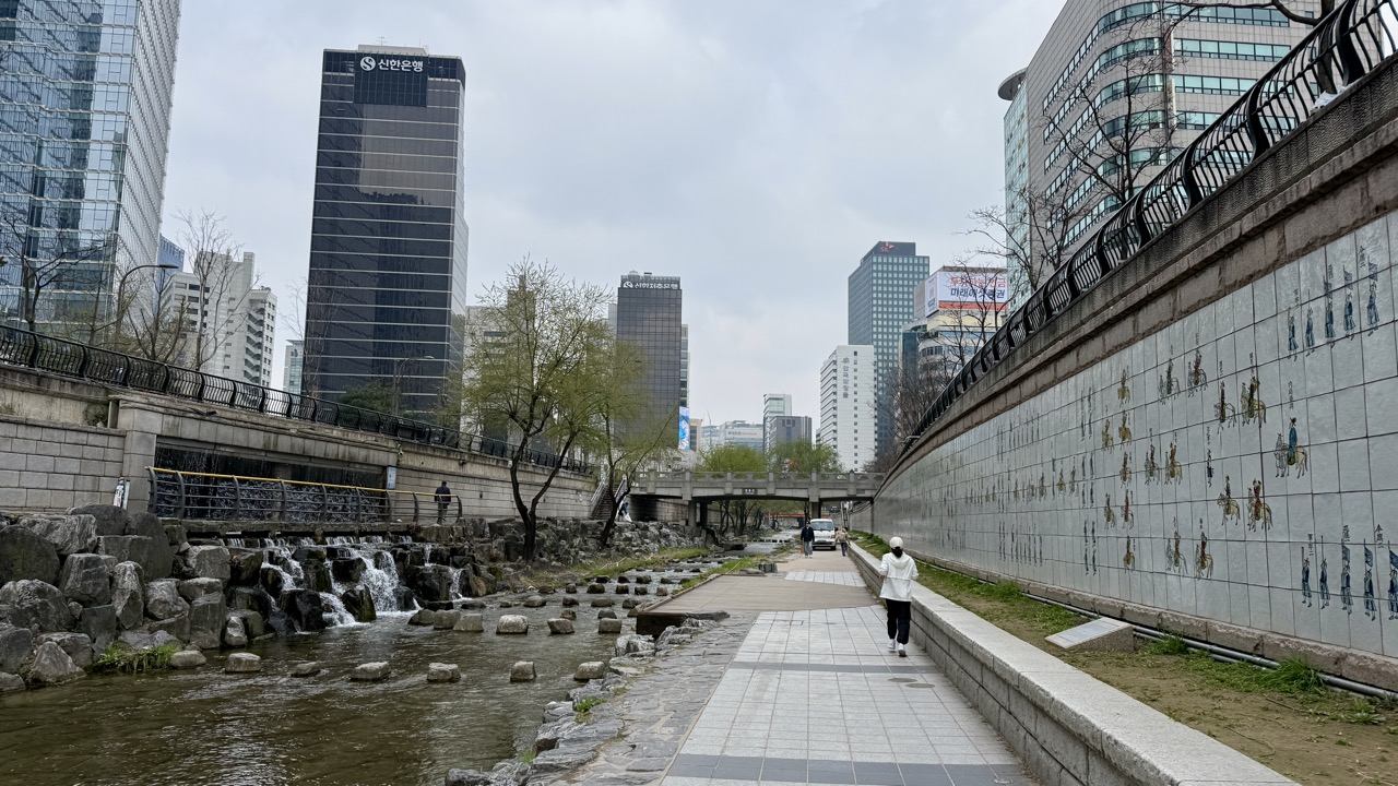 最後に清渓川を走ります。川岸には遊歩道が整備されており、ソウル市内有数のランニングコースとしても知られています。