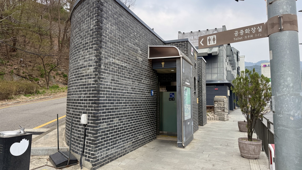 景福宮から外れて三清洞通りを北上していると、いよいよトイレが危なくなってきました。三清公園まで我慢できるかな…、と不安になり始めた矢先、道端に公衆トイレを発見。中は清潔に管理されていて、外には水飲み場までありました。至れり尽せりですね。