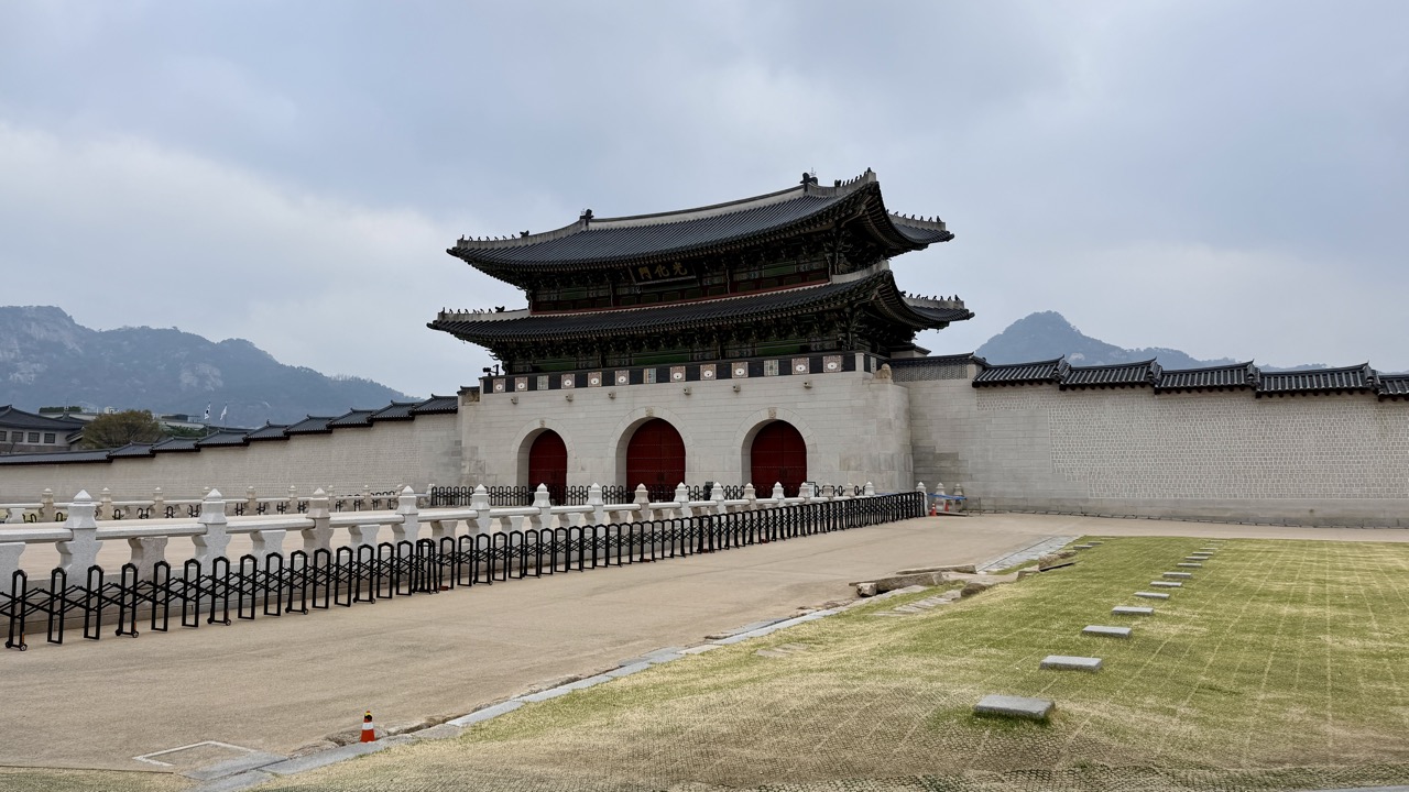 景福宮の東側を進んでいきます。景福宮は1395年に創建された朝鮮王朝の宮殿。外周は約3kmほどあり、東京でいうと皇居ランみたいな感じでランニングが楽しめます。