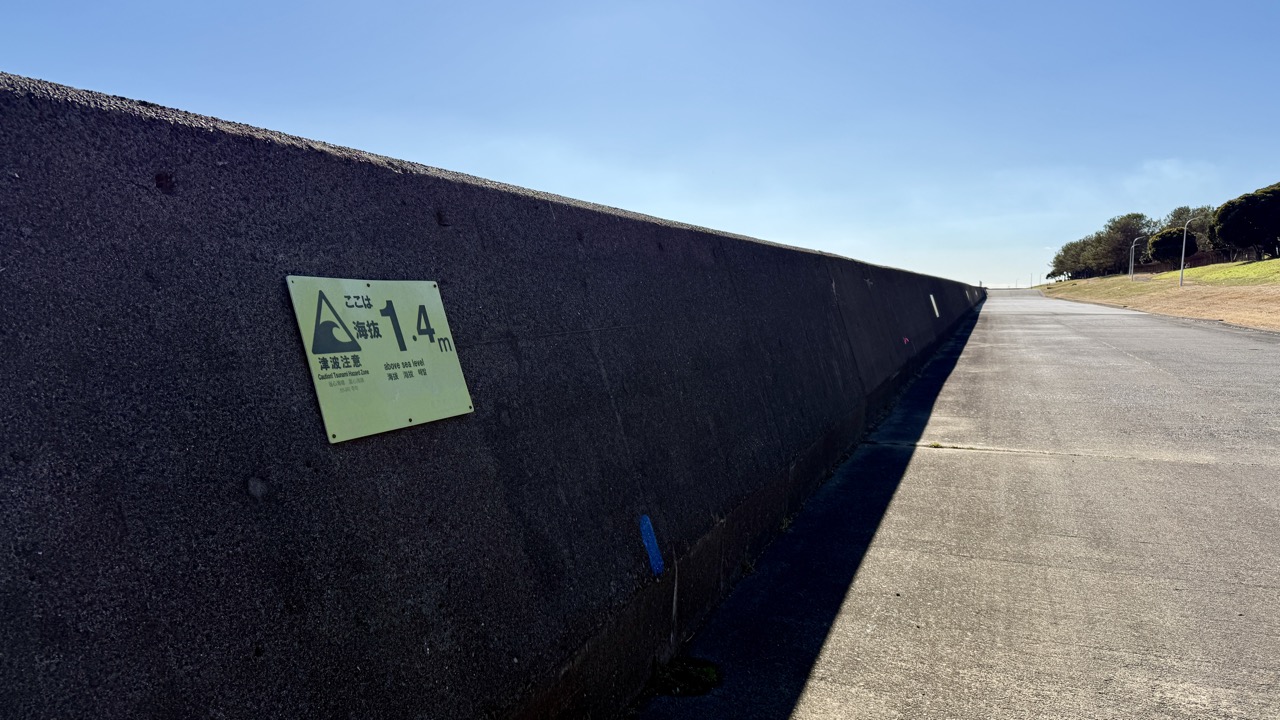 この辺りは海抜1.4mしかなく、津波が来たら完全にアウトですね…。地震を察知したら、隣のゴルフ場の高台に避難します。