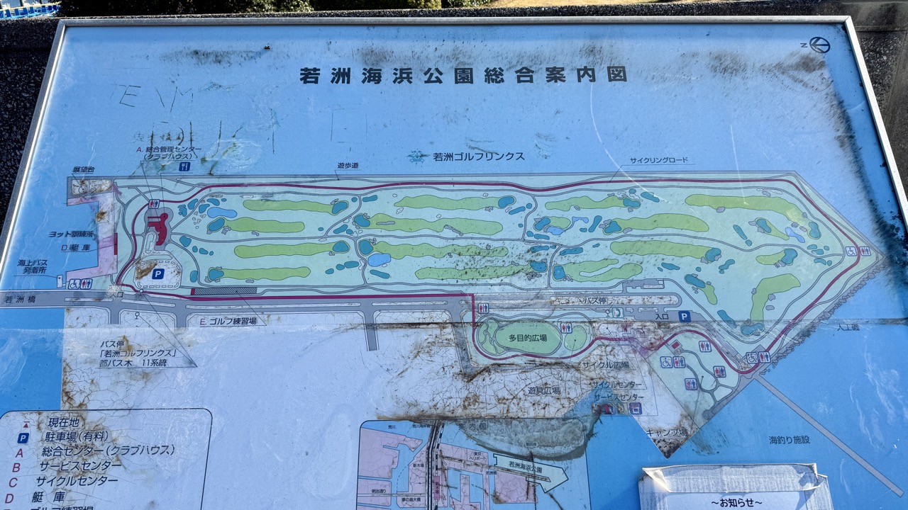 夢の島のランニングコースについては以前、記事にまとめているので省略します。今回初めて走った若洲海浜公園は1990年に開業。広大な敷地の大部分は「若洲ゴルフリンクス」というゴルフ場ですが、海沿いにはサイクリングコースが整備されています。