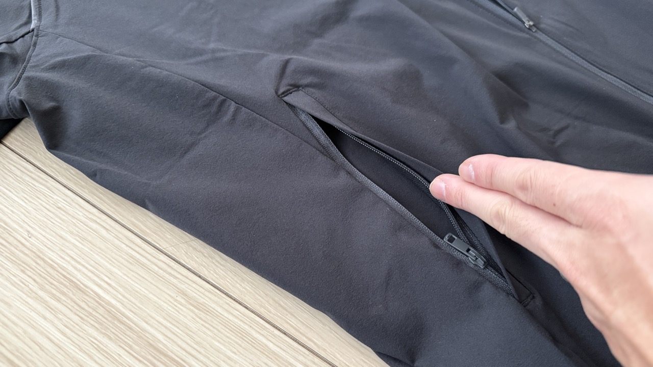 それからジャケットとパンツに共通して言えるのは、ドライ機能が非常に優秀。気温5℃で肌寒いとはいえ、10分も走れば汗をかきますが、汗で生地が濡れる感じがなく、汗冷えの心配は皆無でした。