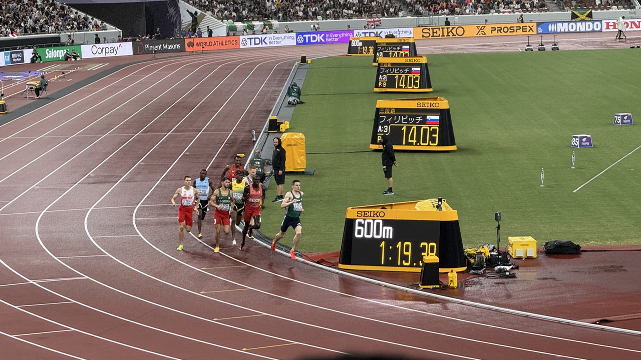 男子800m準決勝。アイルランドのシアン・マクフィリップス選手が自国記録を更新してフィニッシュ。後ろにいたアイルランド応援団が歓喜していました。