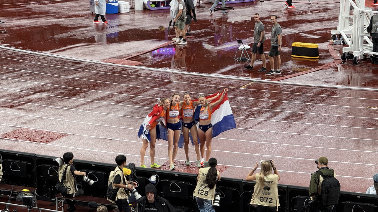 女子400mリレー決勝で3位でフィニッシュしたチーム・オランダ。